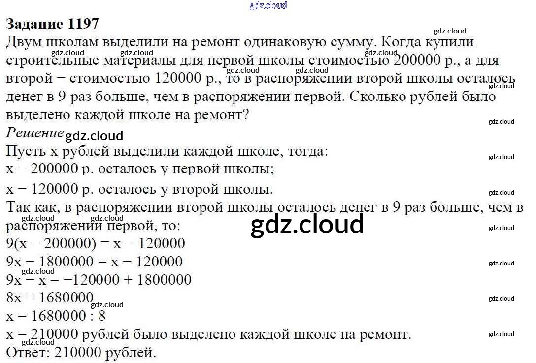 Ответ на задание 1197 Учебник Математика за 6 (шестой) класс Мерзляк, Полонский, Якир Алгоритм успеха 2016