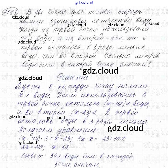 Ответ на задание 1198 Учебник Математика за 6 (шестой) класс Мерзляк, Полонский, Якир Алгоритм успеха 2016