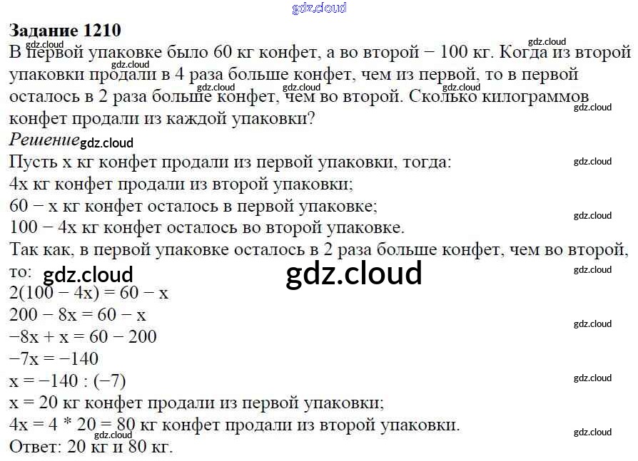 Ответ на задание 1210 Учебник Математика за 6 (шестой) класс Мерзляк, Полонский, Якир Алгоритм успеха 2016