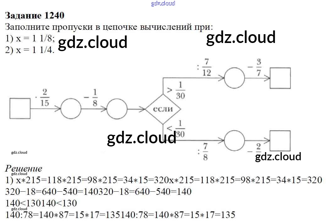 Ответ на задание 1240 Учебник Математика за 6 (шестой) класс Мерзляк, Полонский, Якир Алгоритм успеха 2016