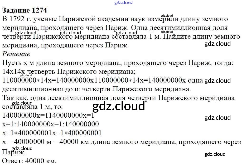 Ответ на задание 1274 Учебник Математика за 6 (шестой) класс Мерзляк, Полонский, Якир Алгоритм успеха 2016
