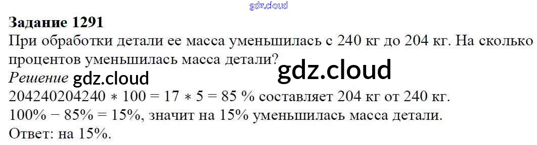 Ответ на задание 1291 Учебник Математика за 6 (шестой) класс Мерзляк, Полонский, Якир Алгоритм успеха 2016