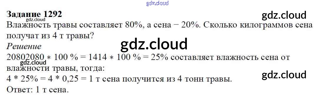 Ответ на задание 1292 Учебник Математика за 6 (шестой) класс Мерзляк, Полонский, Якир Алгоритм успеха 2016