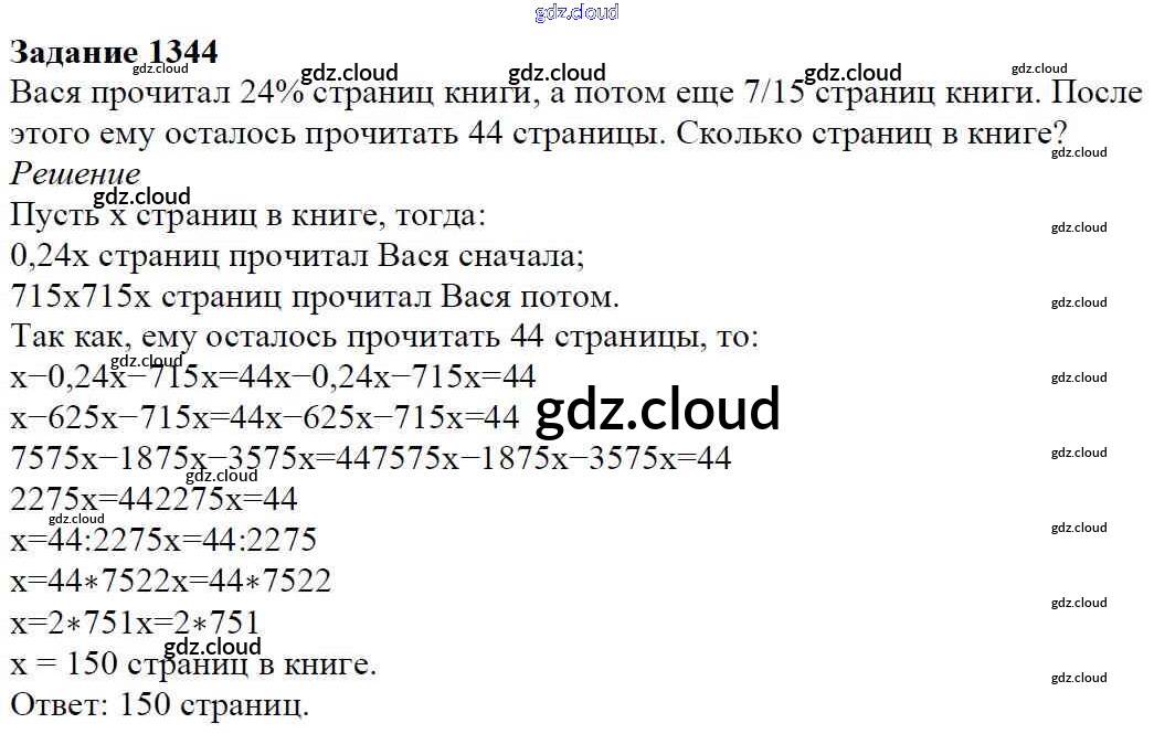 Ответ на задание 1344 Учебник Математика за 6 (шестой) класс Мерзляк, Полонский, Якир Алгоритм успеха 2016