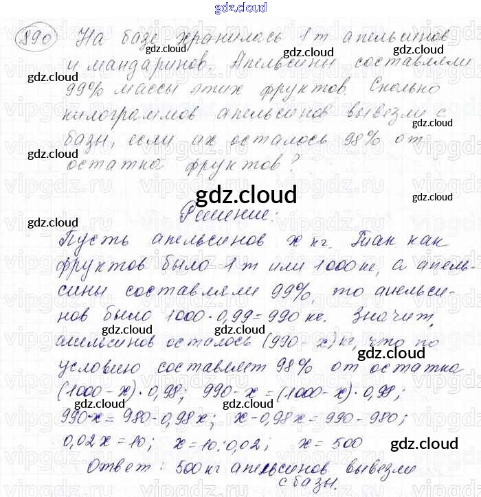 Ответ на задание 890 Учебник Математика за 6 (шестой) класс Мерзляк, Полонский, Якир Алгоритм успеха 2016