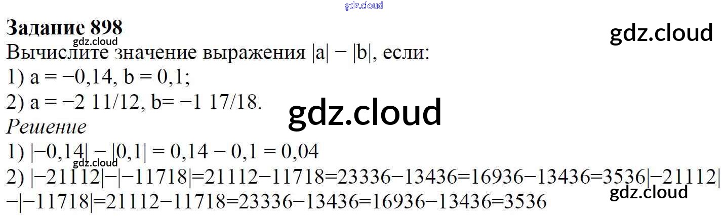 Ответ на задание 898 Учебник Математика за 6 (шестой) класс Мерзляк, Полонский, Якир Алгоритм успеха 2016