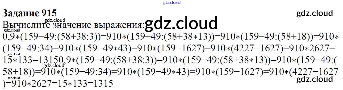 Ответ на задание 915 Учебник Математика за 6 (шестой) класс Мерзляк, Полонский, Якир Алгоритм успеха 2016