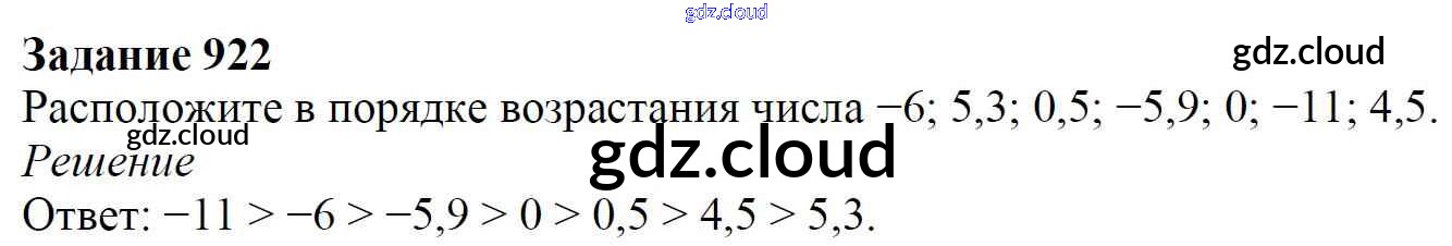 Ответ на задание 922 Учебник Математика за 6 (шестой) класс Мерзляк, Полонский, Якир Алгоритм успеха 2016