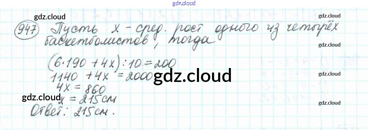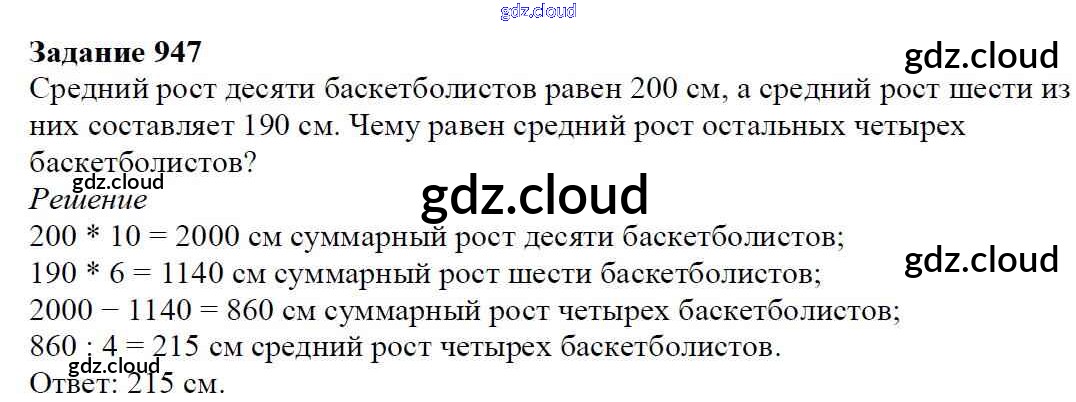 Ответ на задание 947 Учебник Математика за 6 (шестой) класс Мерзляк, Полонский, Якир Алгоритм успеха 2016
