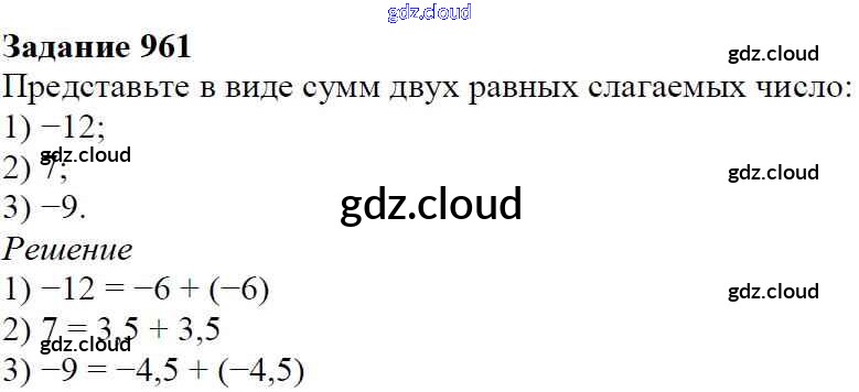 Ответ на задание 961 Учебник Математика за 6 (шестой) класс Мерзляк, Полонский, Якир Алгоритм успеха 2016
