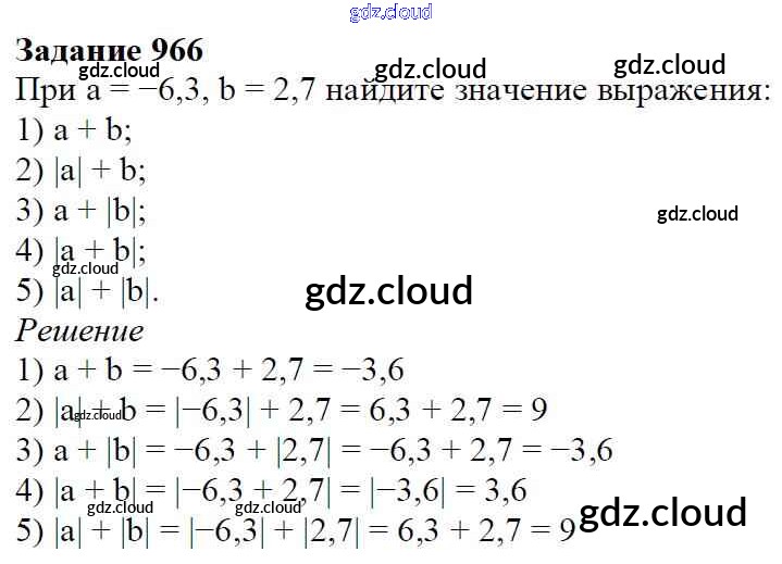Ответ на задание 966 Учебник Математика за 6 (шестой) класс Мерзляк, Полонский, Якир Алгоритм успеха 2016