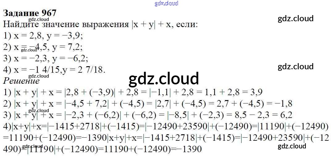Ответ на задание 967 Учебник Математика за 6 (шестой) класс Мерзляк, Полонский, Якир Алгоритм успеха 2016