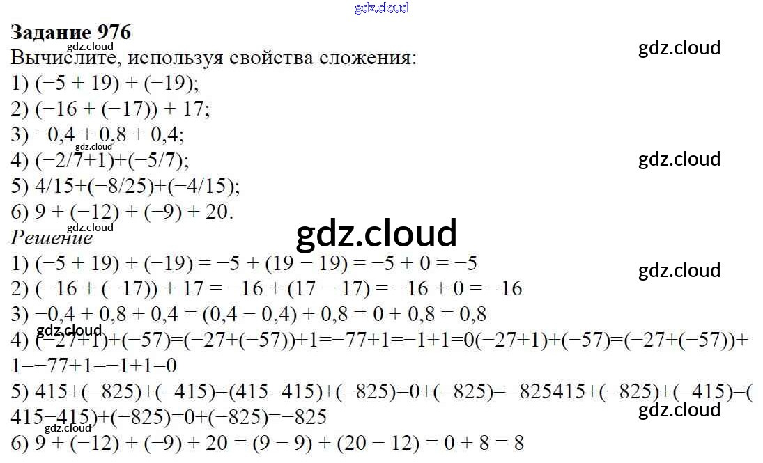 Ответ на задание 976 Учебник Математика за 6 (шестой) класс Мерзляк, Полонский, Якир Алгоритм успеха 2016