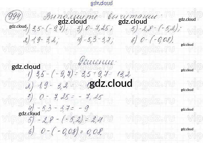 Ответ на задание 994 Учебник Математика за 6 (шестой) класс Мерзляк, Полонский, Якир Алгоритм успеха 2016