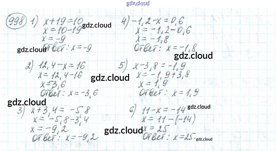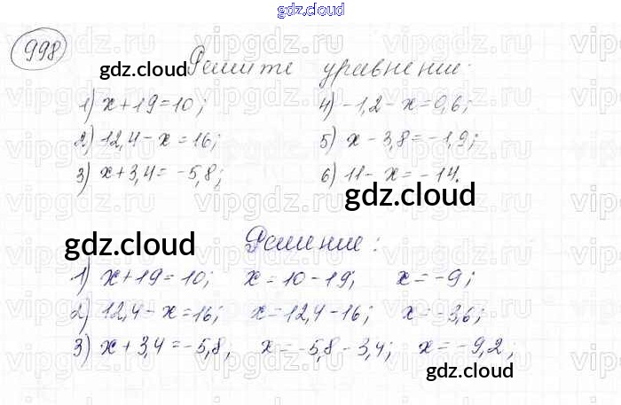 Ответ на задание 998 Учебник Математика за 6 (шестой) класс Мерзляк, Полонский, Якир Алгоритм успеха 2016