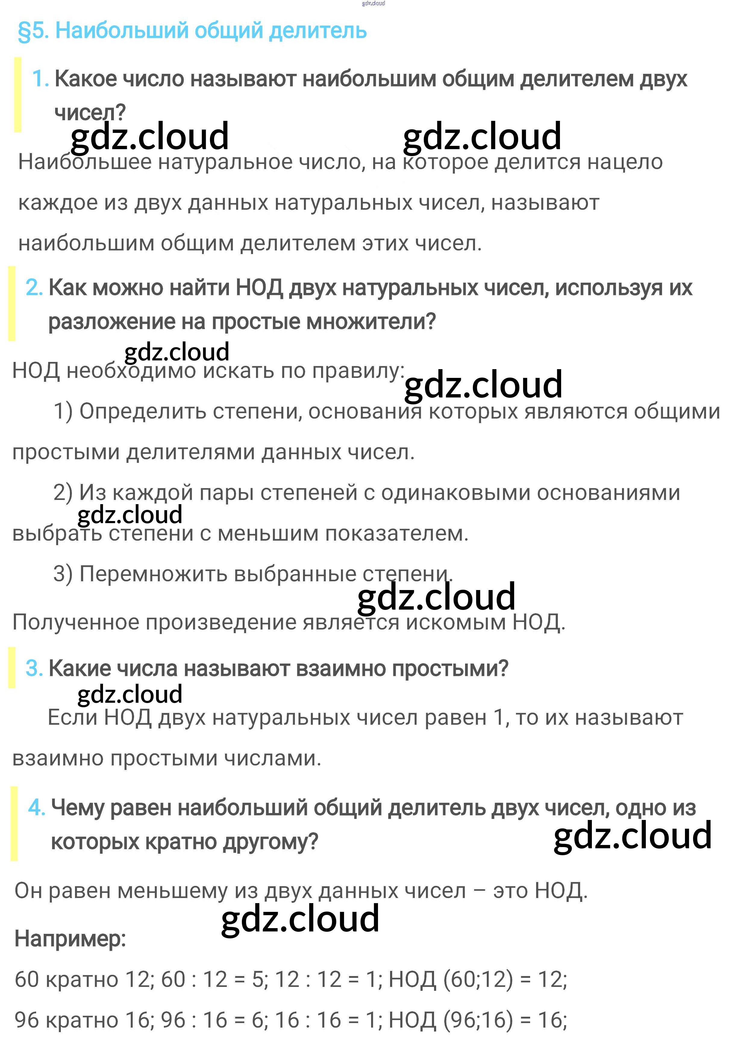 Ответы к Вопросам параграфа по Математике 6 класс Учебник Мерзляк Алгоритм успеха Вентана-граф
