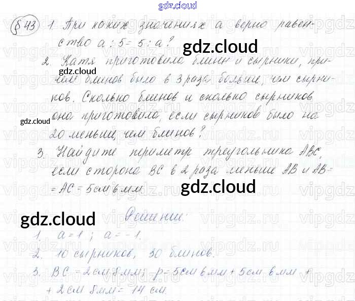 Ответ на задание 43 Учебник Математика за 6 (шестой) класс Мерзляк, Полонский, Якир Алгоритм успеха 2016