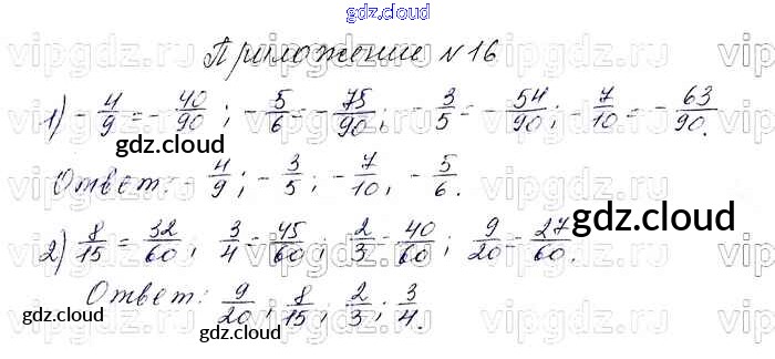 Ответы к Приложению учебника по Математике 6 класс Учебник Мерзляк Алгоритм успеха Вентана-граф
