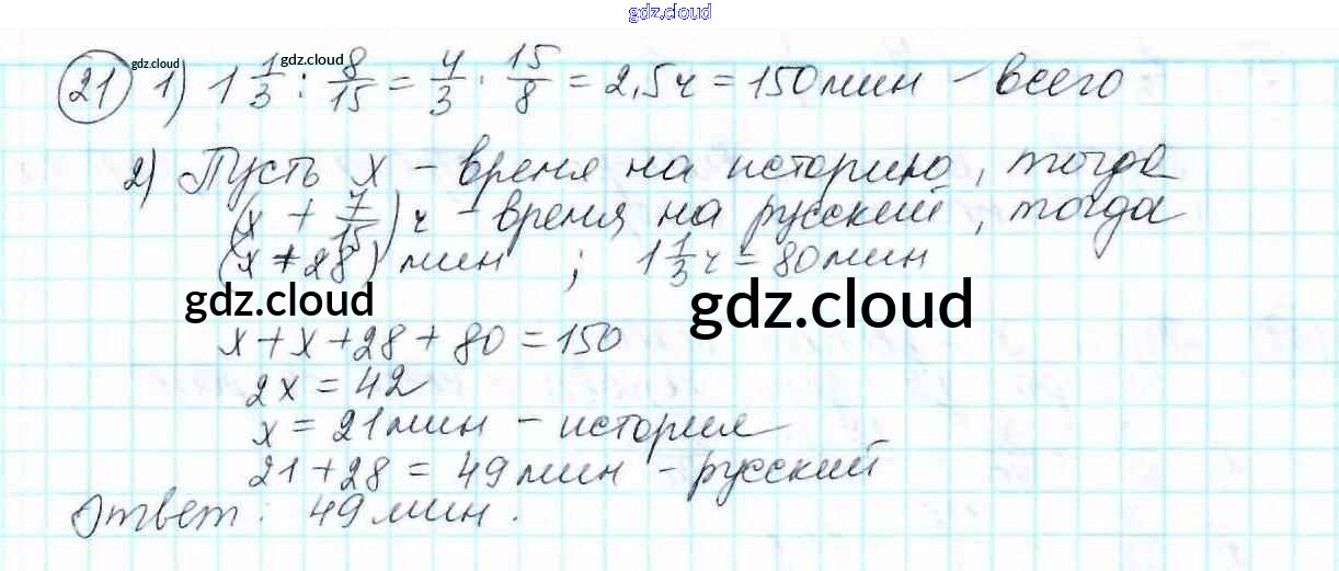 Ответ на задание 21 Учебник Математика за 6 (шестой) класс Мерзляк, Полонский, Якир Алгоритм успеха 2016