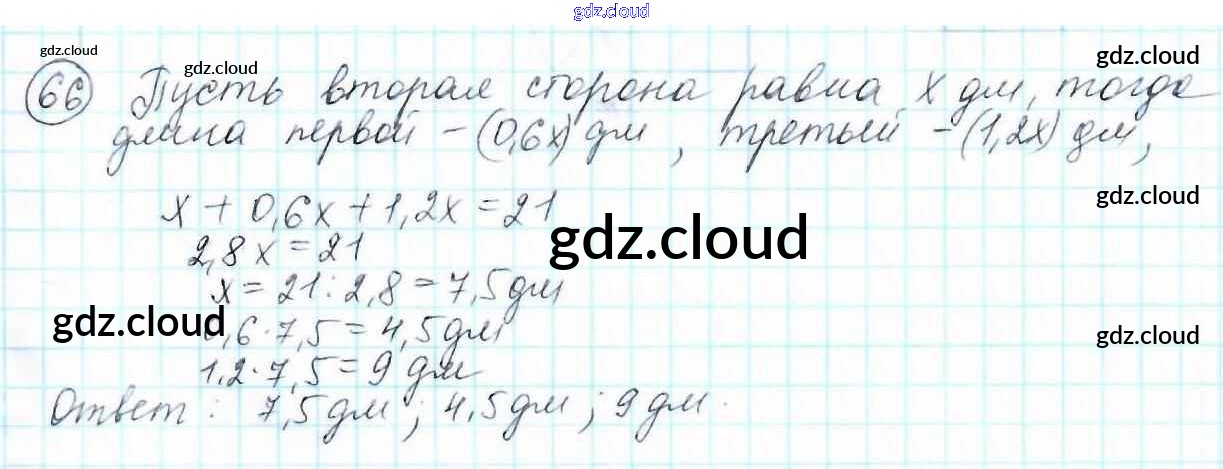 Ответ на задание 66 Учебник Математика за 6 (шестой) класс Мерзляк, Полонский, Якир Алгоритм успеха 2016
