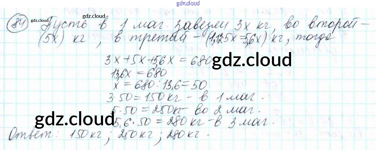 Ответ на задание 84 Учебник Математика за 6 (шестой) класс Мерзляк, Полонский, Якир Алгоритм успеха 2016