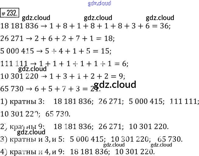 Ответ на задание 232 Учебник Математика за 6 (шестой) класс Муравин, Муравина Вертикаль 2016 ФГОС онлайн и без номера телефона.