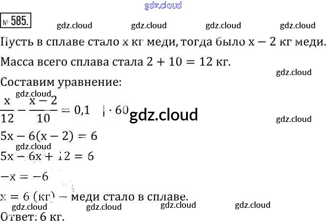 Ответ на задание 585 Учебник Математика за 6 (шестой) класс Муравин, Муравина Вертикаль 2016 ФГОС онлайн и без номера телефона.