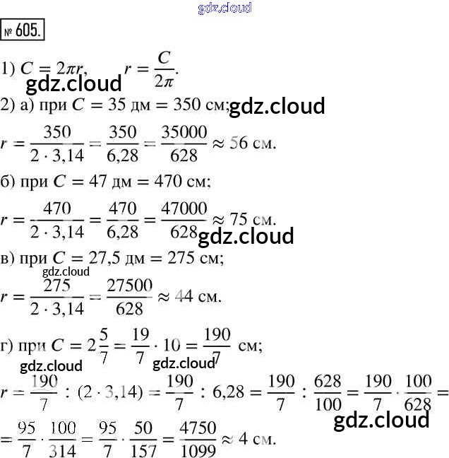 Ответ на задание 605 Учебник Математика за 6 (шестой) класс Муравин, Муравина Вертикаль 2016 ФГОС онлайн и без номера телефона.