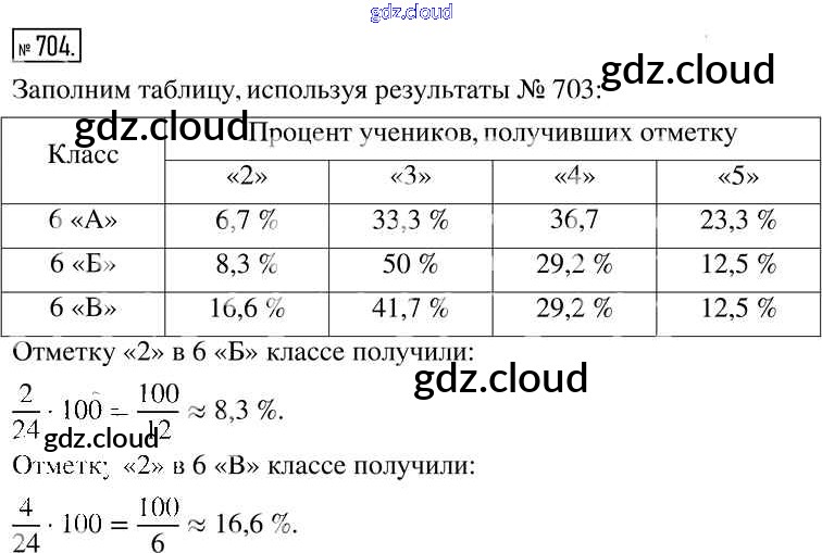 Ответ на задание 704 Учебник Математика за 6 (шестой) класс Муравин, Муравина Вертикаль 2016 ФГОС онлайн и без номера телефона.