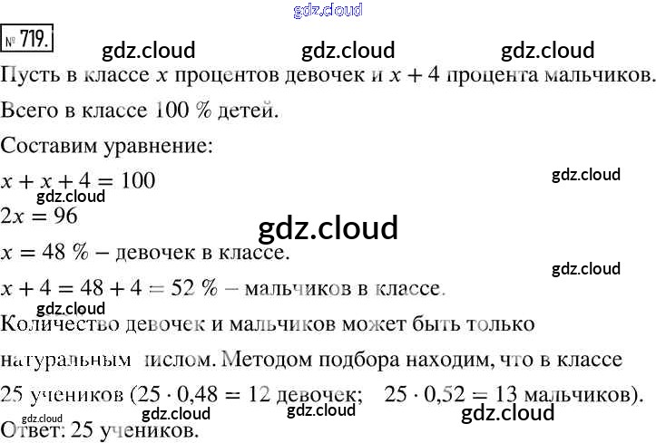 Ответ на задание 719 Учебник Математика за 6 (шестой) класс Муравин, Муравина Вертикаль 2016 ФГОС онлайн и без номера телефона.
