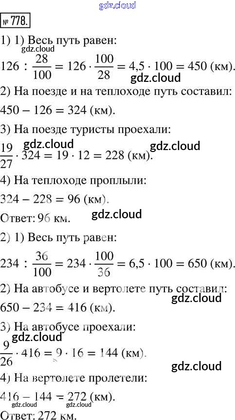 Ответ на задание 778 Учебник Математика за 6 (шестой) класс Муравин, Муравина Вертикаль 2016 ФГОС онлайн и без номера телефона.