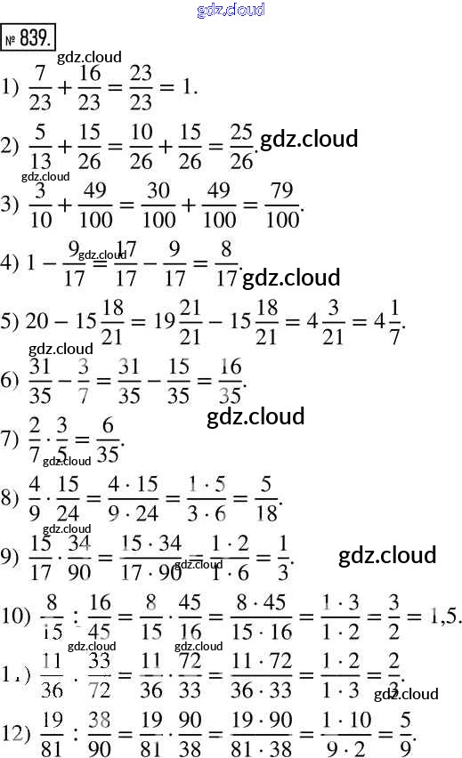 Ответ на задание 839 Учебник Математика за 6 (шестой) класс Муравин, Муравина Вертикаль 2016 ФГОС онлайн и без номера телефона.