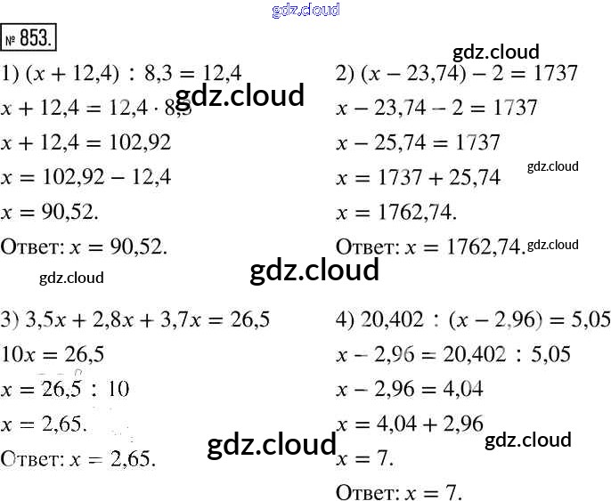 Ответ на задание 853 Учебник Математика за 6 (шестой) класс Муравин, Муравина Вертикаль 2016 ФГОС онлайн и без номера телефона.