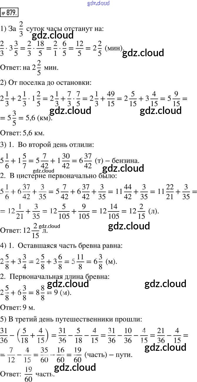 Ответ на задание 879 Учебник Математика за 6 (шестой) класс Муравин, Муравина Вертикаль 2016 ФГОС онлайн и без номера телефона.