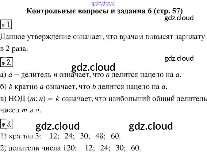 Ответы к контрольным вопросам и заданиям по Математике 6 класс Учебник Муравин Вертикаль Дрофа