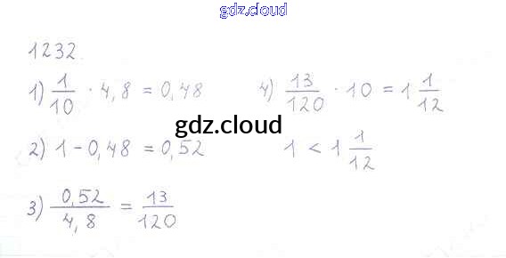Ответ на задание 1232 Учебник Математика за 6 (шестой) класс Никольский, Потапов, Решетников, Шевкин МГУ - школе 2014