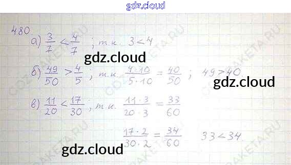 Ответ на задание 480 Учебник Математика за 6 (шестой) класс Никольский, Потапов, Решетников, Шевкин МГУ - школе 2014