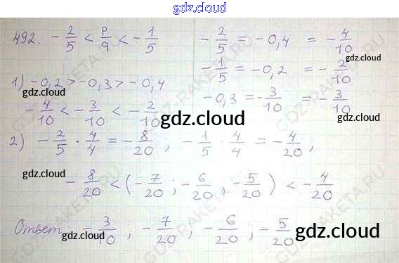 Ответ на задание 492 Учебник Математика за 6 (шестой) класс Никольский, Потапов, Решетников, Шевкин МГУ - школе 2014
