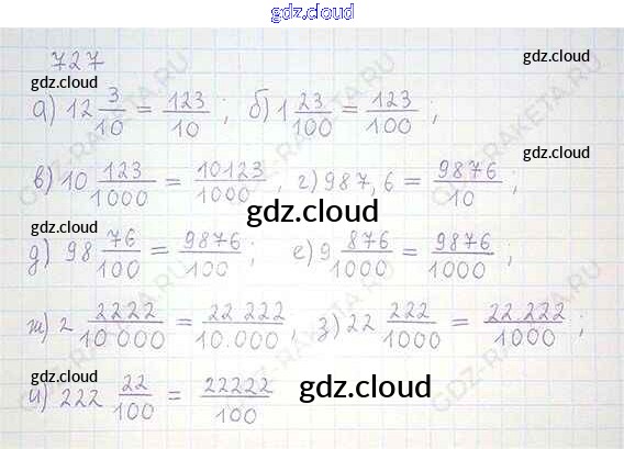 Ответ на задание 727 Учебник Математика за 6 (шестой) класс Никольский, Потапов, Решетников, Шевкин МГУ - школе 2014