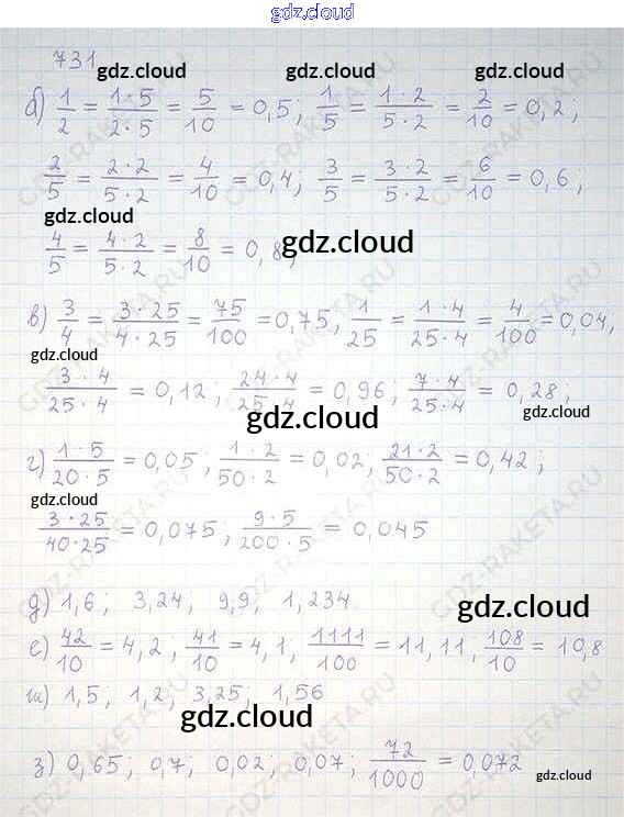 Ответ на задание 731 Учебник Математика за 6 (шестой) класс Никольский, Потапов, Решетников, Шевкин МГУ - школе 2014