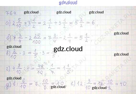 Ответ на задание 764 Учебник Математика за 6 (шестой) класс Никольский, Потапов, Решетников, Шевкин МГУ - школе 2014