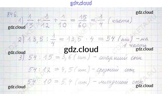 Ответ на задание 846 Учебник Математика за 6 (шестой) класс Никольский, Потапов, Решетников, Шевкин МГУ - школе 2014