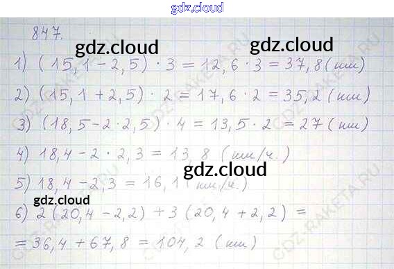 Ответ на задание 847 Учебник Математика за 6 (шестой) класс Никольский, Потапов, Решетников, Шевкин МГУ - школе 2014