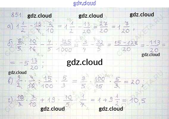 Ответ на задание 851 Учебник Математика за 6 (шестой) класс Никольский, Потапов, Решетников, Шевкин МГУ - школе 2014
