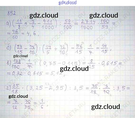 Ответ на задание 852 Учебник Математика за 6 (шестой) класс Никольский, Потапов, Решетников, Шевкин МГУ - школе 2014