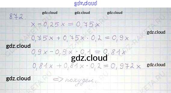 Ответ на задание 872 Учебник Математика за 6 (шестой) класс Никольский, Потапов, Решетников, Шевкин МГУ - школе 2014