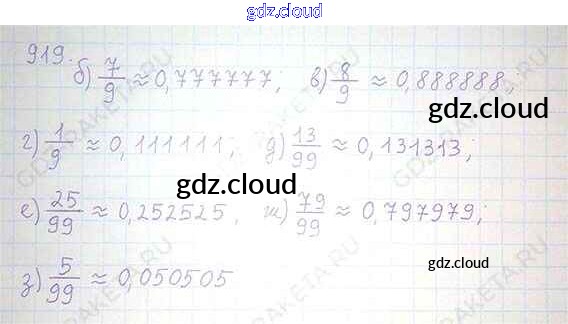 Ответ на задание 919 Учебник Математика за 6 (шестой) класс Никольский, Потапов, Решетников, Шевкин МГУ - школе 2014