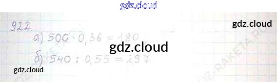 Ответ на задание 922 Учебник Математика за 6 (шестой) класс Никольский, Потапов, Решетников, Шевкин МГУ - школе 2014