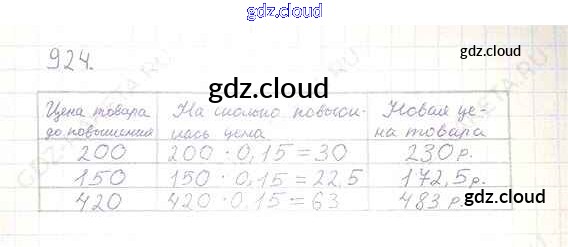 Ответ на задание 924 Учебник Математика за 6 (шестой) класс Никольский, Потапов, Решетников, Шевкин МГУ - школе 2014