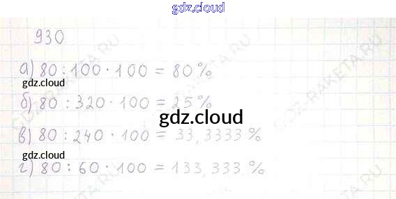 Ответ на задание 930 Учебник Математика за 6 (шестой) класс Никольский, Потапов, Решетников, Шевкин МГУ - школе 2014